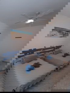 Casa con capacidad de 4 a 6 personas, que conta de 2 habitaciones (una con cama de matrimonio y otra con 2 camas), salón-comedor , cocina abierta comunicada con el salón, baño completo y una gran terraza enfocada hacia el Este desde donde también se puede contemplar el amanecer.